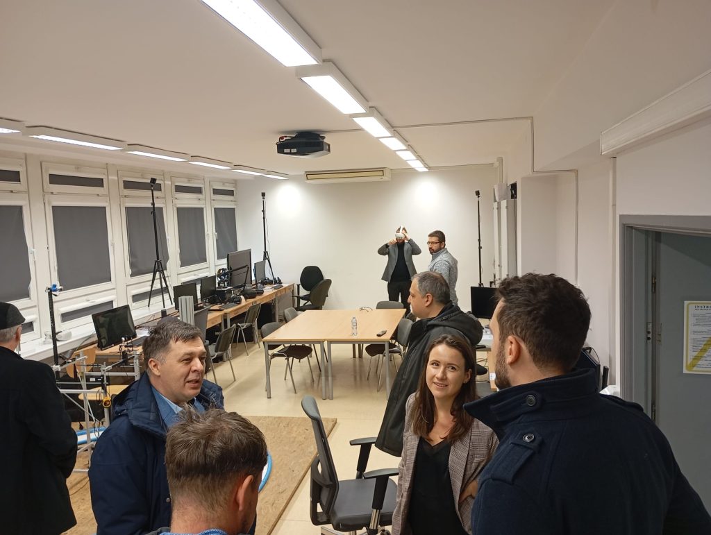Participants also visited the VR laboratory at the Faculty of Mechanical Engineering, where demonstrations of virtual, mixed, and augmented reality tools were presented. A hands-on mini-workshop allowed participants to experiment with developing AR applications that will be integrated into the BIOMEDIX e-Book.